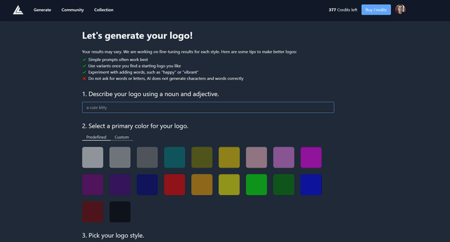 Web app that lets the user generate highly customized logos using the DALL-E API.